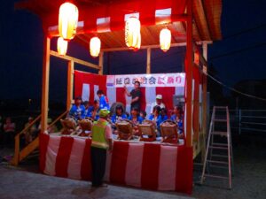 班目自治会が夏まつりを開催 2019年8月15日 最終更新日時 : 2023年9月22日 msyakyo 福祉会が販売する稲荷寿司も完売し、子供会の太鼓が響く宵の口を迎えると、メインイベントである神輿の登場です。ねぶたの山車灯篭を思わせる神輿を、中和会(青年会)が中心となって担いで回りました。
