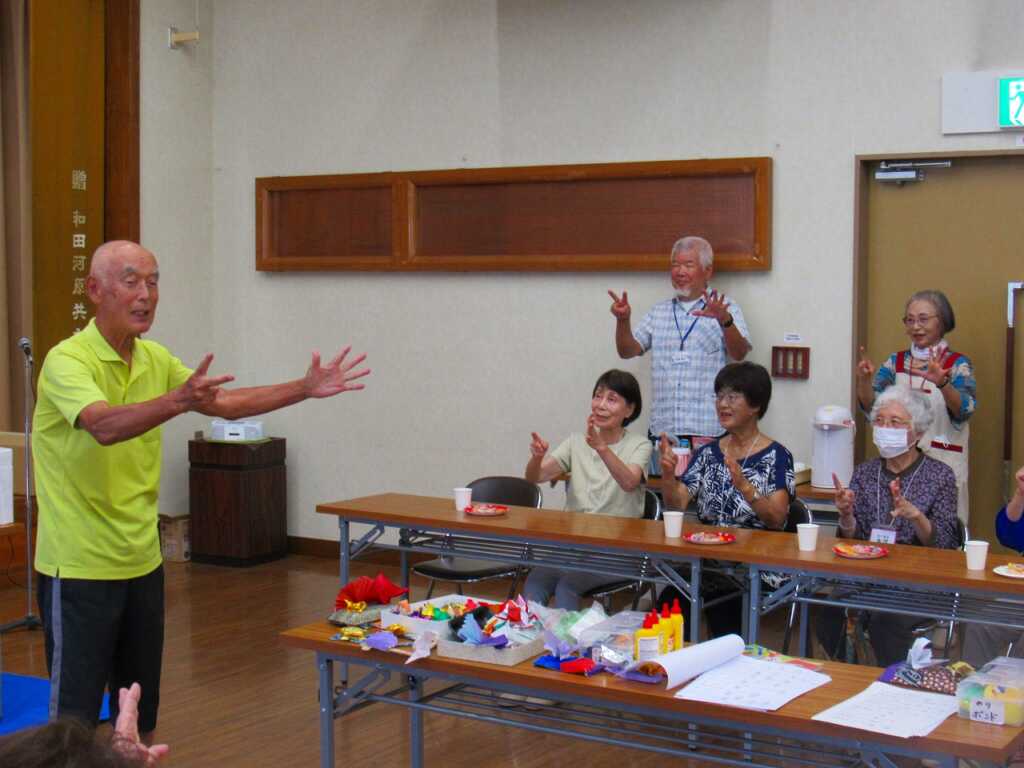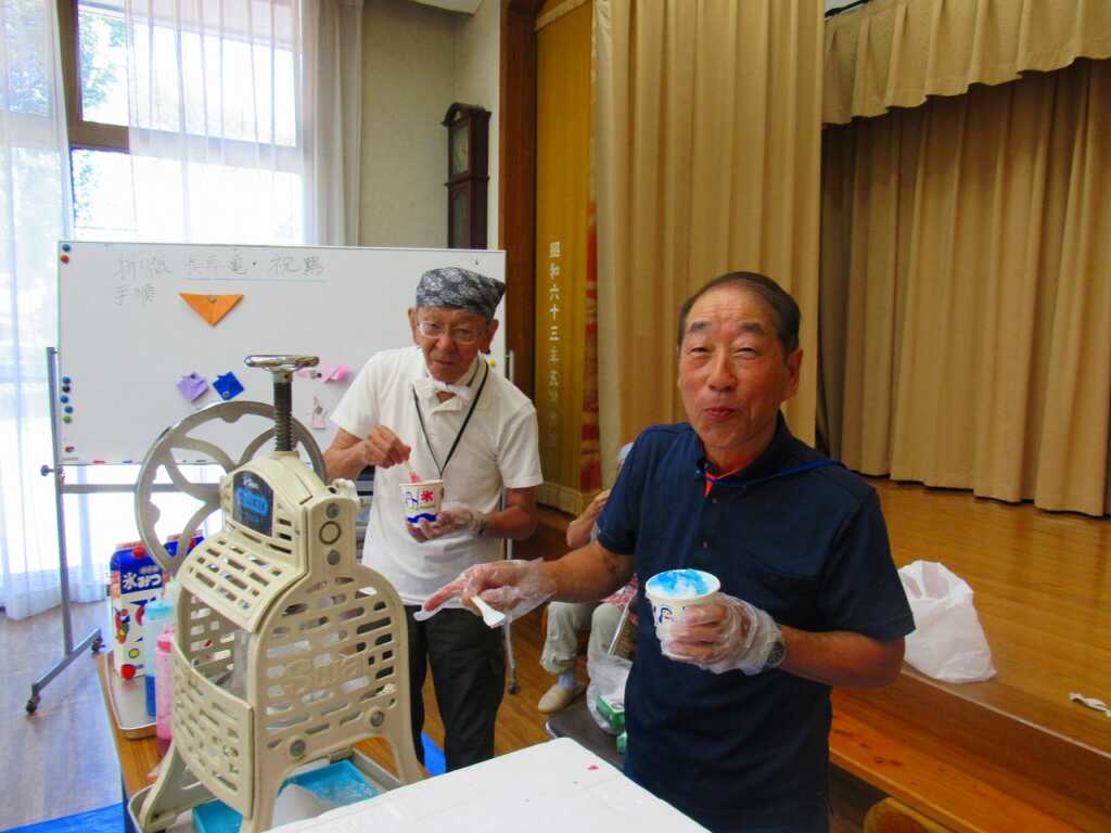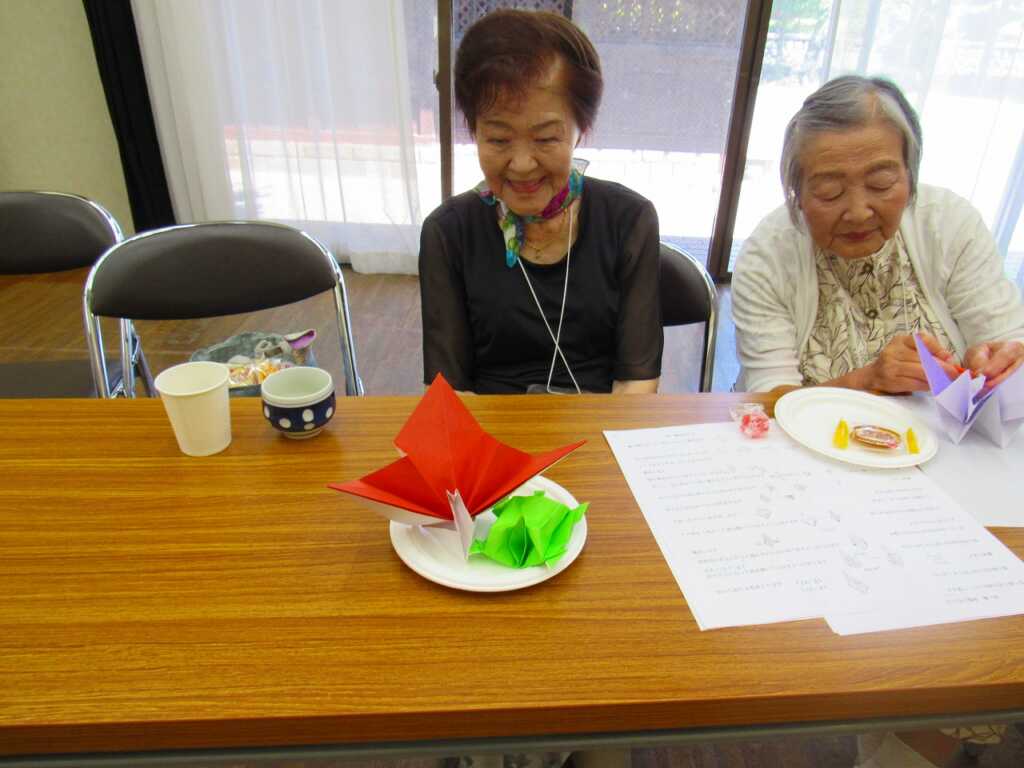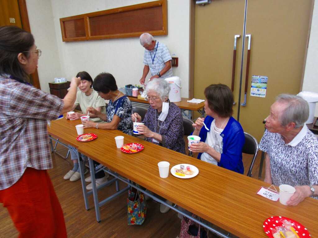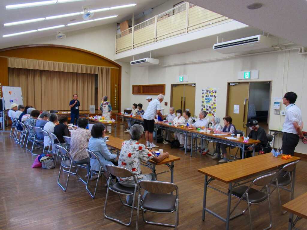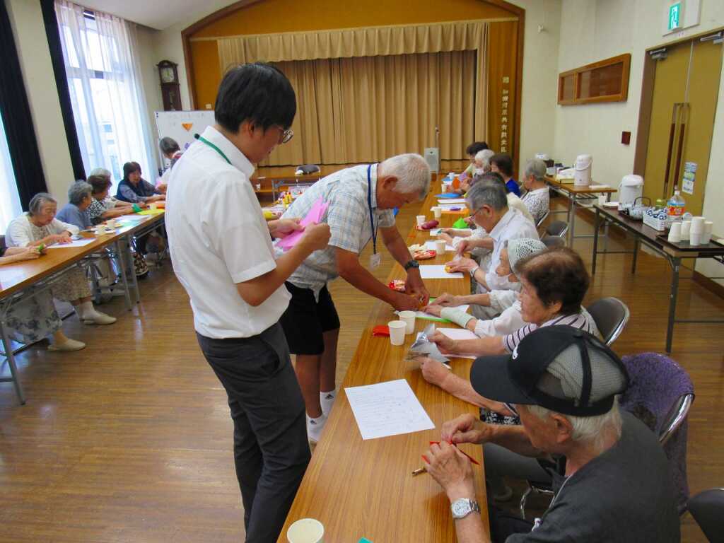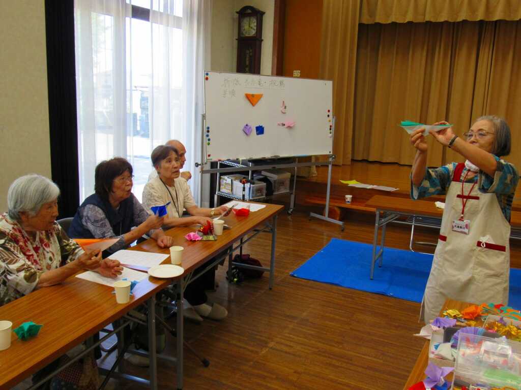 8月のお休みが明け、久しぶりのふれあいカフェとなりました。定番の三橋会長による、手指の運動と頭の体操の後、お茶菓子とかき氷が振る舞われました。「かき氷冷たくておいしいわね」と参加者から大好評でした。 かき氷を楽しんだ後は、10月3日・4日・5日に行われる公民館祭りに展示する祝い鶴、祝い亀を折りました。皆さん真剣に折りすすめ無事完成しました! 次回は10月15日(水)の開催予定です。 |