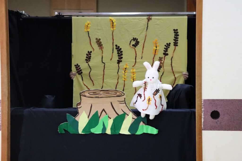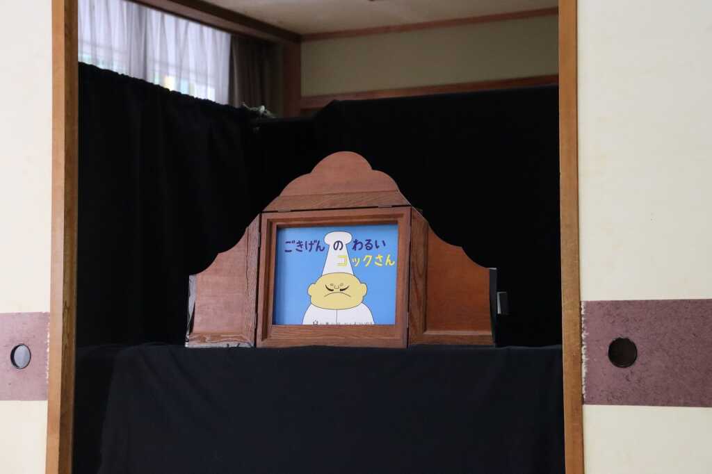 今月は「人形劇団はる」の皆さんをお招きし、人形劇の公演をしていただきました。人形をはじめ、スライド式で変わる背景の大道具等もすべてメンバーの手作り!こだわりや工夫がいっぱい詰まった公演でした。他にも、紙芝居の披露やペアで行う体操等もご紹介いただきました。大人の皆さんも、童心に返り楽しみました。