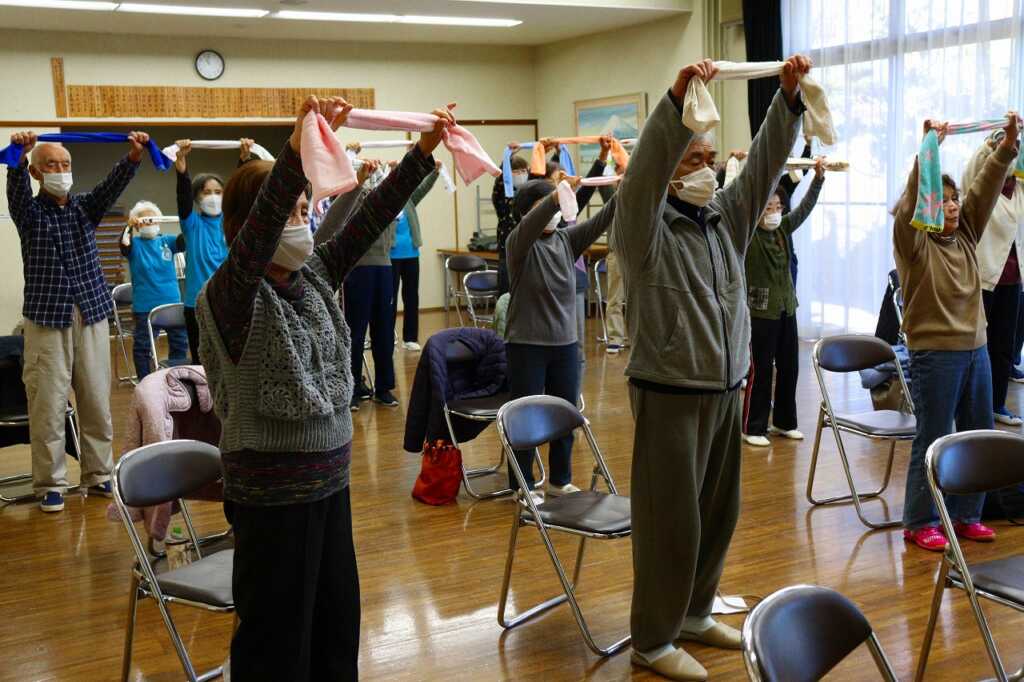 年明け最初の健康体操会、26名の参加者が集まりました。講師から「朝晩凄く寒いですね。久しぶりに体操する方も無理のない範囲で大丈夫です」とお話があり、足から順番に身体をほぐしました。筋力トレーニングやタオル体操を行った後、最後は手話「逢えてよかった」を皆さんで歌いました。